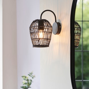 Made from faux rattan Dimmable Suitable for bathroom use Matching family items available Stylish and modern, why not upgrade our bathroom look with this stunning wall light? This wall light is made from faux rattan for that boho effect, and is dimmable, so you can create your own ambience. Good things come to those who…
