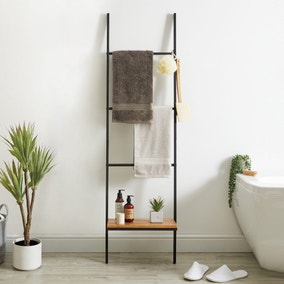 * Acacia Wood Material * Multi-functional – use the shelves how you desire * Part Assembly Required – easy to install Boasting a contemporary and modern design, our Fulton Wood ladder shelf will bring style to any bathroom. The ladder shelf is multi-functional with one shelf and 3 rails to use how you desire. Beautifully…