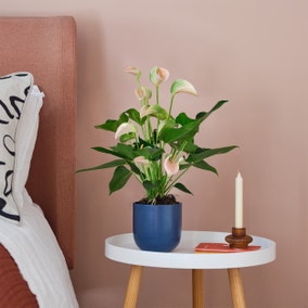 These futuristic looking houseplants are also nicknamed the flamingo plant – and we’re sure you can see why! Unapologetically flamboyant, they’re known for their waxy, peach coloured, heart-shaped leaves which are often mistaken for flowers. Native to the tropical rainforests of America, it loves humidity and isn’t too fond of the cold – so keep it away from any cold draughts! Otherwise, the Peach Anthurium is surprisingly low maintenance and easy to care for. Paired with a handmade, perfectly-fitting coloured earthenware pot.