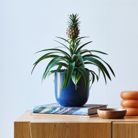 Houseplants don’t come more fun than the Pineapple Plant! With lovely lush, green, spiky leaves and a miniature pineapple nestling in the middle – it’s a must have for any plant lover. Part of the Bromeliad family, these plants are native to Brazil but are grown in tropical regions across the globe where they’re cultivated for their delicious fruit. This tropical beauty is surprisingly easy to care for, it loves plenty of bright light but be careful of too much direct light, as that can scorch its leaves. Paired with a handmade, perfectly-fitting coloured earthenware pot.**How to keep me happy:**