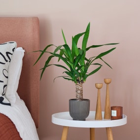 The Yucca, with its striking sword-like leaves, is a laid-back easy to care for plant. Native to the hot, dry deserts of America & Mexico, it loves soaking up the warm rays of the sun – but we do recommend keeping them out of too much direct sunlight. The Yucca has very little care needs and will only need watering once its soil has completely dried out, the ideal houseplant! These quirky plants were a hit in the 70s but are definitely having their revival. Paired with a ribbed, perfectly-fitting ceramic pot.Please note, unfortunately we cannot deliver this item to Northern Ireland or the Channel Islands.